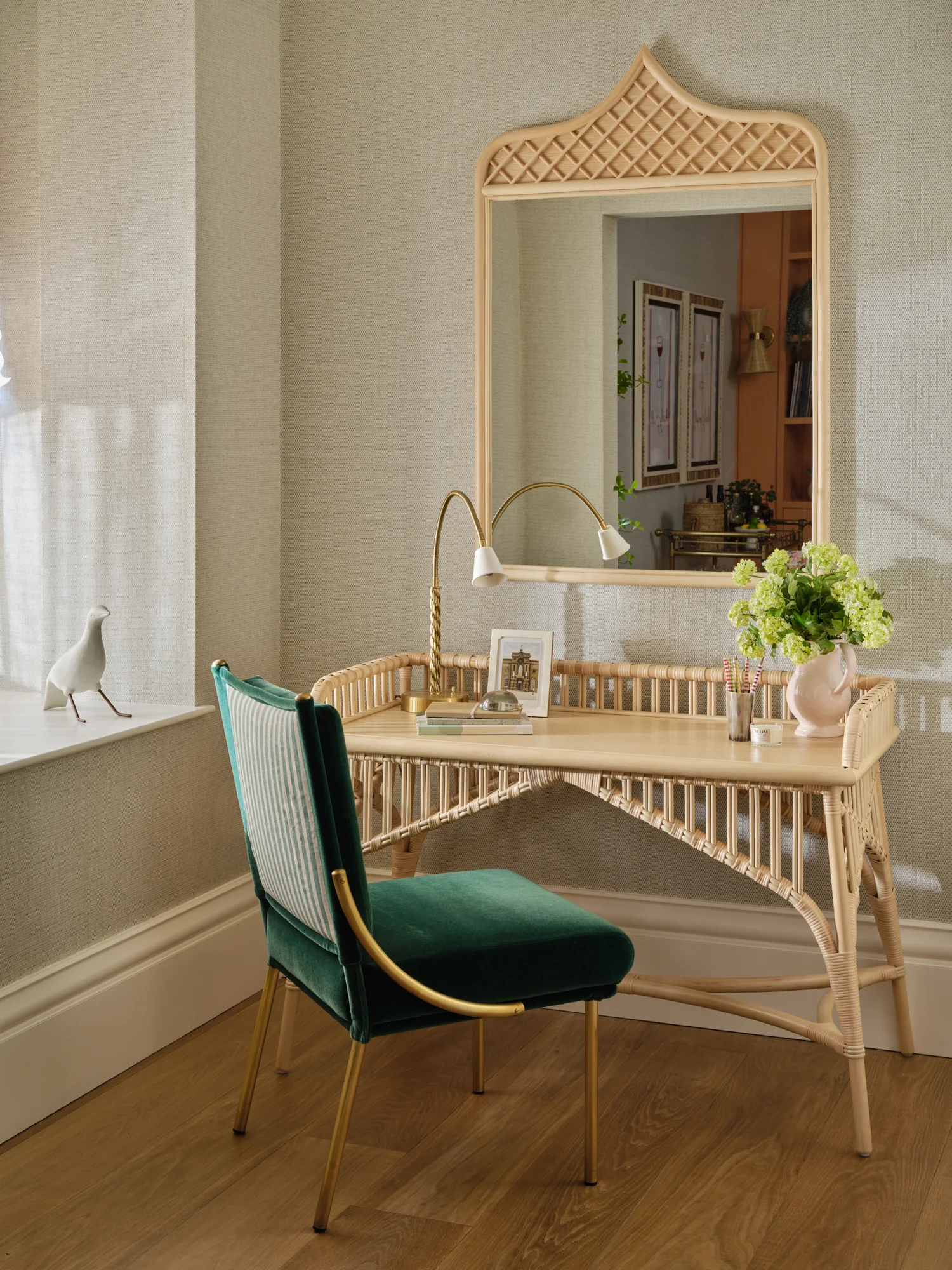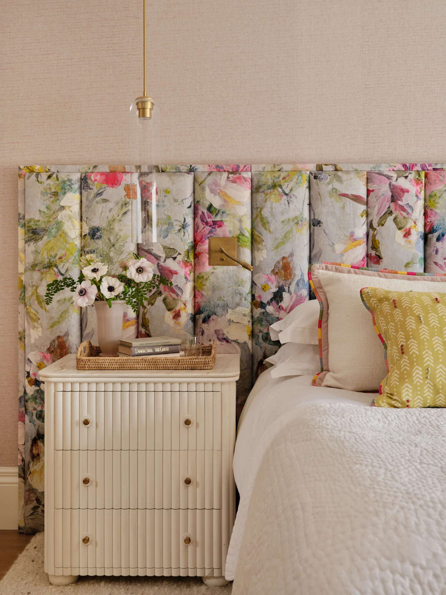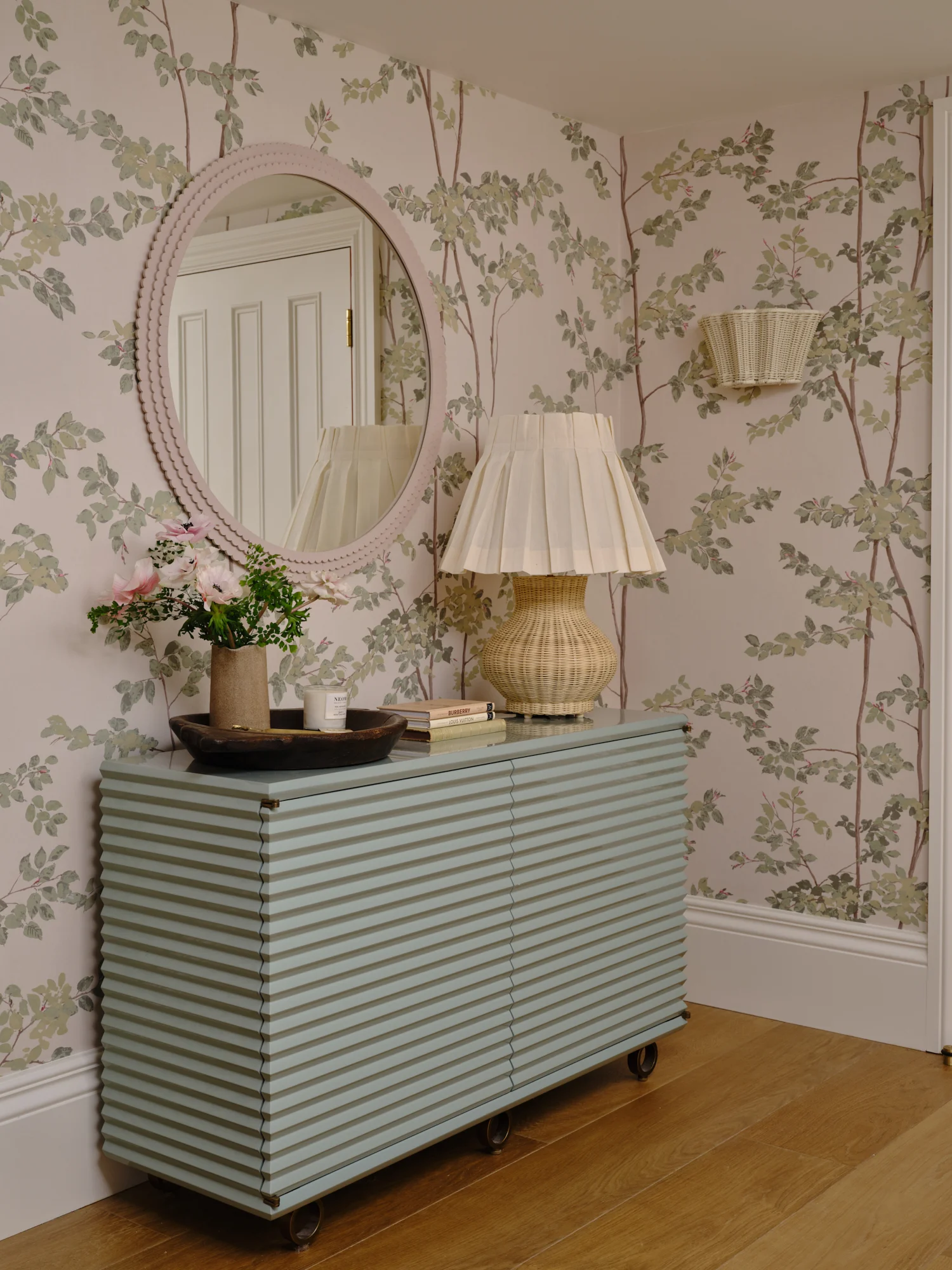 As well as honouring the period feel of the house, we also had to sensitively integrate a ‘wish list’ for the house which very much reflected modern day living. Departing from the classic cinema room style of plain, dark and moody, we chose padded fabric walling in a striking pattern to add personality and texture whilst also having great acoustic properties.